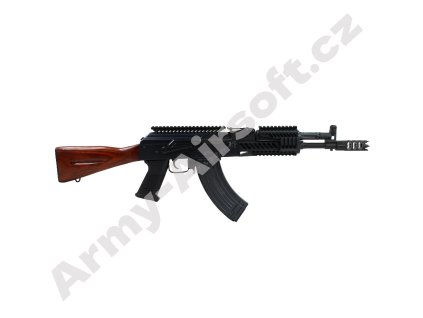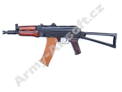 Celokovové, elektrické AK G-04 od LCT Airsoft s předpažbím z pravého dřeva a boční sklopnou pažbou.