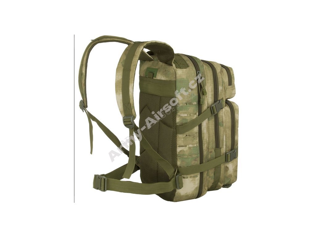 Malý taktický batoh o objemu cca 30 litrů od firmy MFH s laserem vyřezanou vazbou pro MOLLE.