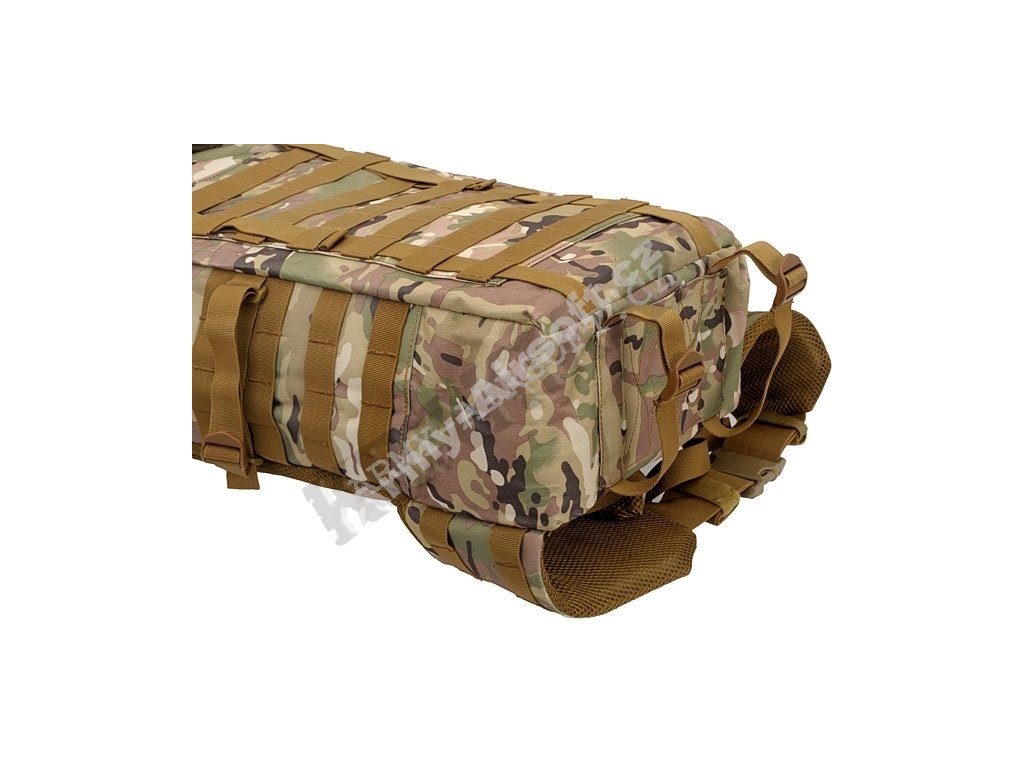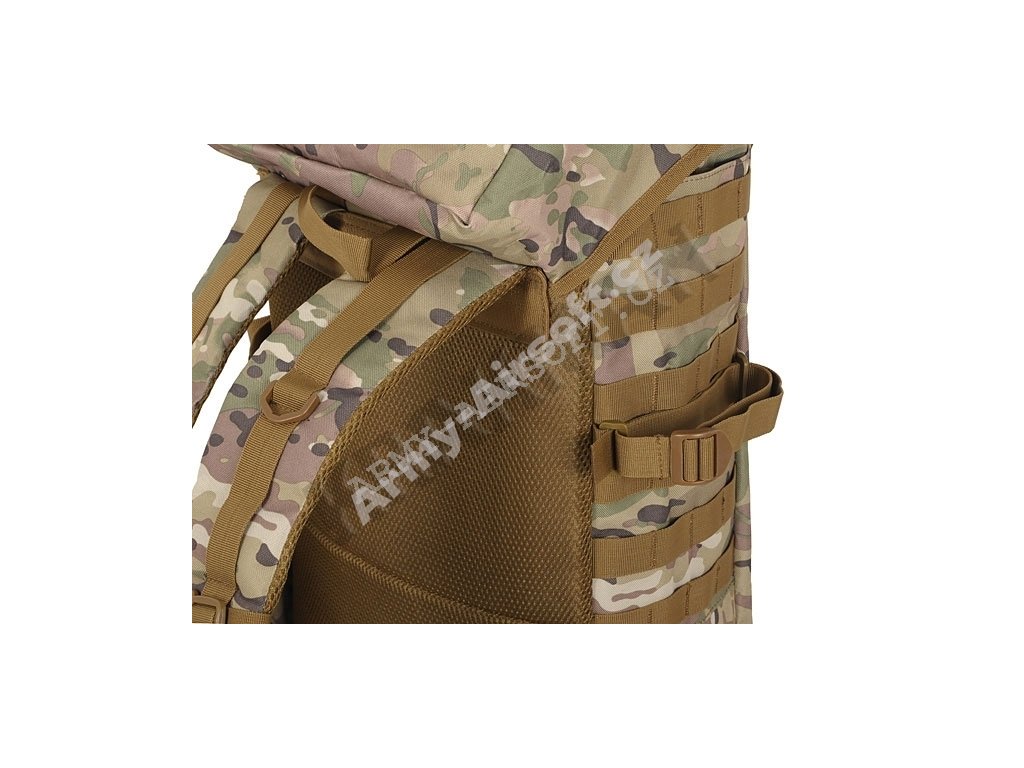Velmi kvalitně zpracovaný batoh z nepromokavého a odolného materiálu proti roztržení nylon 600D. Taktický MOLLE úchytný systém nabízí možnost uchycení spousty doplňku. Prostorná hlavní přihrádka se snadným horním přístupem, jenž umožňuje efektivní a rychlé balení. Hrudní popruh, široké popruhy a pásek zvyšují pohodlí na cestách. Batoh taktéž disponuje kompresními popruhy. Na spodní části batohu se nalézají popruhy umožnující přichycení kupříkladu spacího pytle.