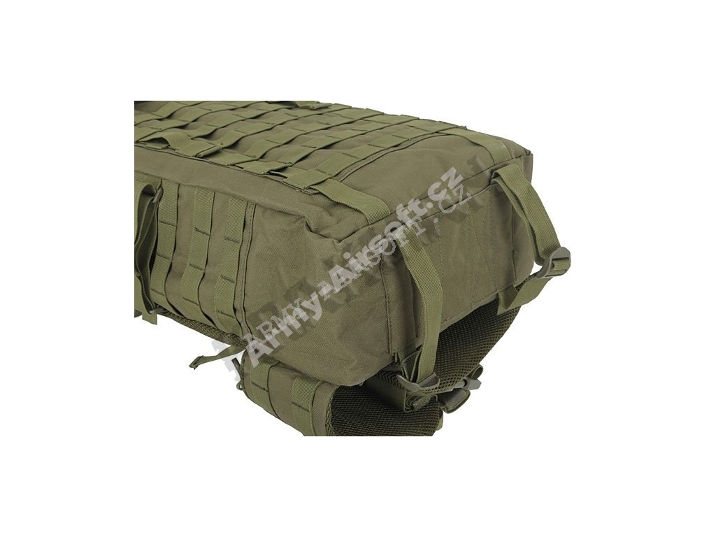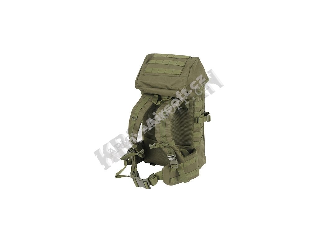 Velmi kvalitně zpracovaný batoh z nepromokavého a odolného materiálu proti roztržení nylon 600D. Taktický MOLLE úchytný systém nabízí možnost uchycení spousty doplňku. Prostorná hlavní přihrádka se snadným horním přístupem, jenž umožňuje efektivní a rychlé balení. Hrudní popruh, široké popruhy a pásek zvyšují pohodlí na cestách. Batoh taktéž disponuje kompresními popruhy. Na spodní části batohu se nalézají popruhy umožnující přichycení kupříkladu spacího pytle.