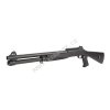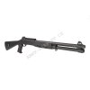 Airsoftová zbraň manuální brokovnice v měřítku 1:1. Tělo je vyrobeno z odolného ABS plastu s matnou povrchovou úpravou. Pažbička a nabíjecí předpažbí je pogumované. Hlaveň a drobné díly jsou kovové. V balení nalzenete dvě patrony na 30 ran (každá). Po vložení do zásobníku brokovnice a natažení, vystřelí zbraň tři kuličky najednou. Každou z jedné hlavně. Díky tomu je zbraň poměrně přesná. Ideální pro boj do budov, nebo na krátké vzdálenosti, protože na jeden stisk spouště okamžitě vyletí tři kuličky.