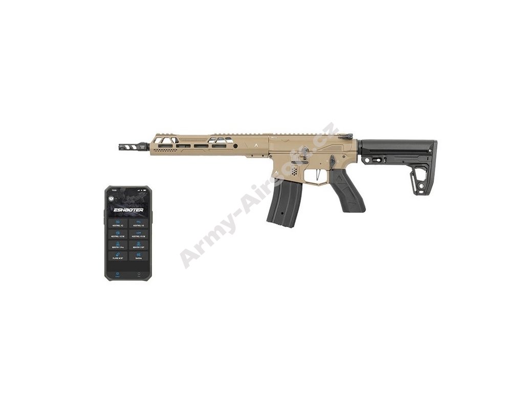 Ovládání přes aplikaci "Eshooter": nastavení přednatažení (pre-cocking), citlivosti spouště, režimů střelby; ukládání profilů a aktualizace softwaru.