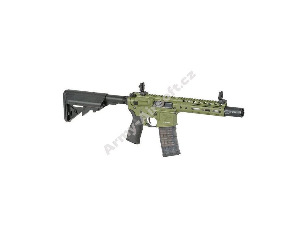 Airsoftová zbraň dosahuje kadence 25 kuliček za sekundu a je vybavena programovatelným MOSFETem ETU (Eshooter ETU V2), který umožňuje konfigurovatelné režimy střelby (burst, binary), regulaci pre-cockingu, ochranu baterie a zvýšenou životnost mechanismu.