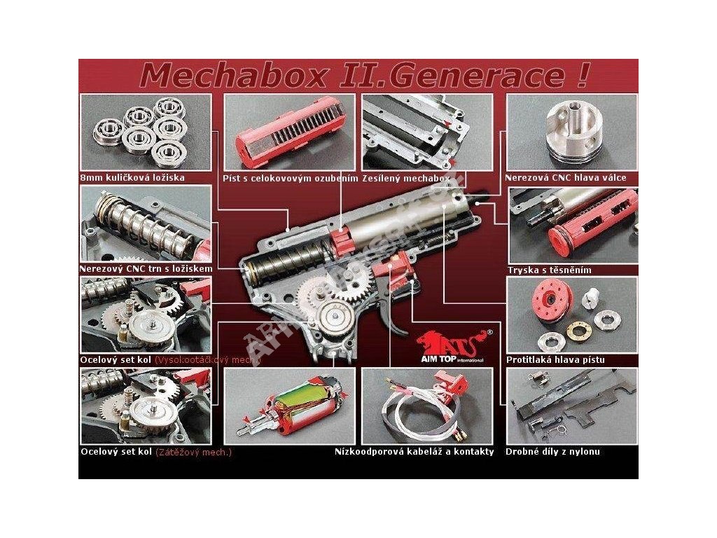 Airsoftová zbraň M4 RAS v celokovovém provedení, která již od výrobce obsahuje kompletní zesílený mechabox AimTop včetně vysoko-zátěžového motoru. Každý model je opatřen laserem vypáleným logem USMC. Kvalitní provedení, nadstandardní upgrade a vysoce nadprůměrný výkon směle konkuruje značkovým zbraním. Jedná se o zbraň přímo sestavenou výrobcem AimTop (Taiwan), nikoliv úpravu čínských low-end zbraní. Předpažbí zbraně je vyrobeno na CNC. Jeho prostor umožňuje ukrýt pouze jeden typ akumulátoru z naší nabídky.