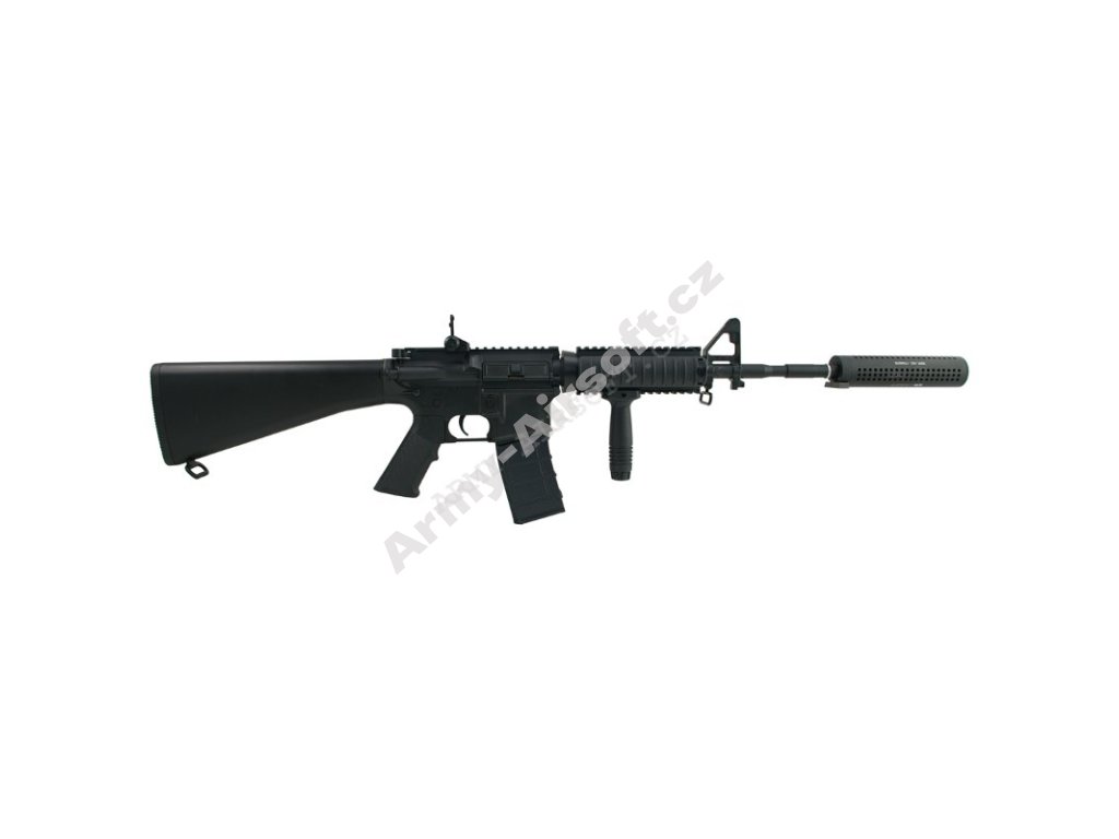 zbraň, 2x zásobník, vytěrák hlavně, návod k použití, R.I.S. rukojeť, taktická spojka zásobníků, QD tlumič dlouhý