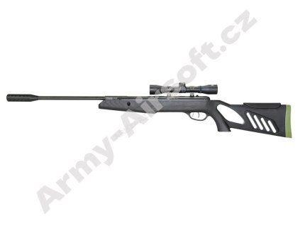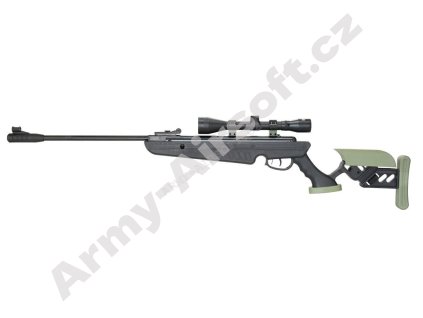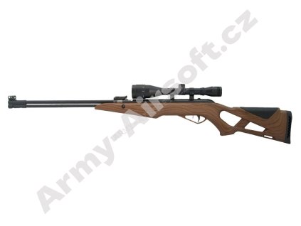 Ruger Targis Hunter, zlamovací zvduchovka s pohonem Nitro pístem, drážkovaná hlaveň kalibru 4,5mm, polymerová pažba, automatická pojistka. Set s optikou 3-9x32 a popruhem.
