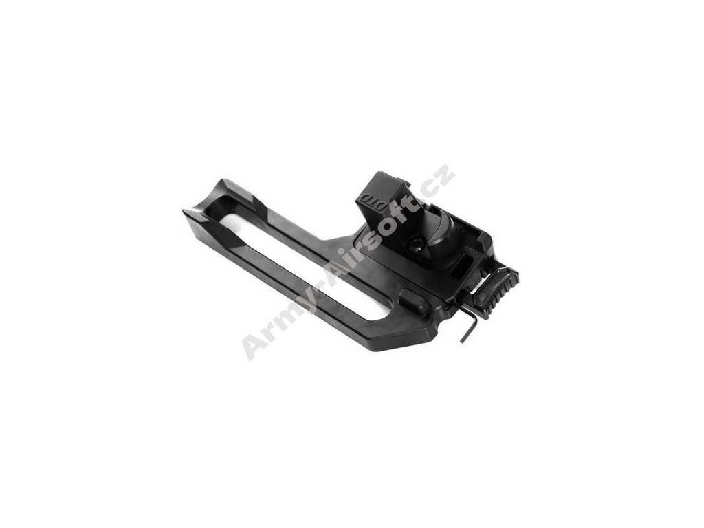Modulární montáž: Pouzdro je kompatibilní s většinou 1-šroubových otočných montážních systémů (360°), včetně platform Novritsch, Amomax a dalších. K použití je nutný montážní adaptér (např. pádlový adaptér, klip na opasek, MOLLE adaptér nebo stehenní platforma – prodává se samostatně).