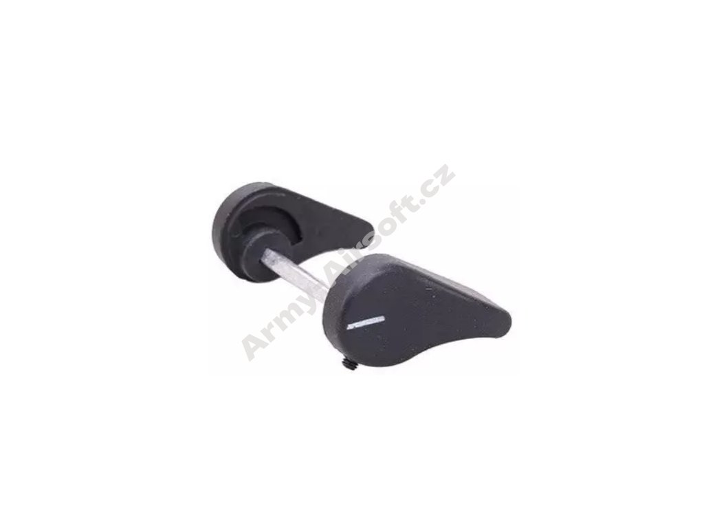Oboustranná páčka přepínače režimu střelby je určena pro repliky typu MP5. Sada obsahuje dvě páčky přepínače střelby a montážní čep z kovu.