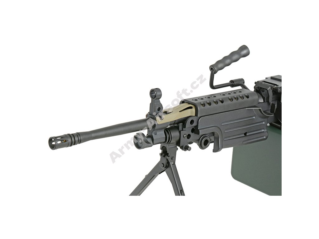 Tento lehký kulomet je ideální volbou pro hráče hledající realistickou a spolehlivou repliku s vysokou kapacitou zásobníku a skvělým výkonem. Perfektní pro dlouhé střelby v airsoftových bitvách!