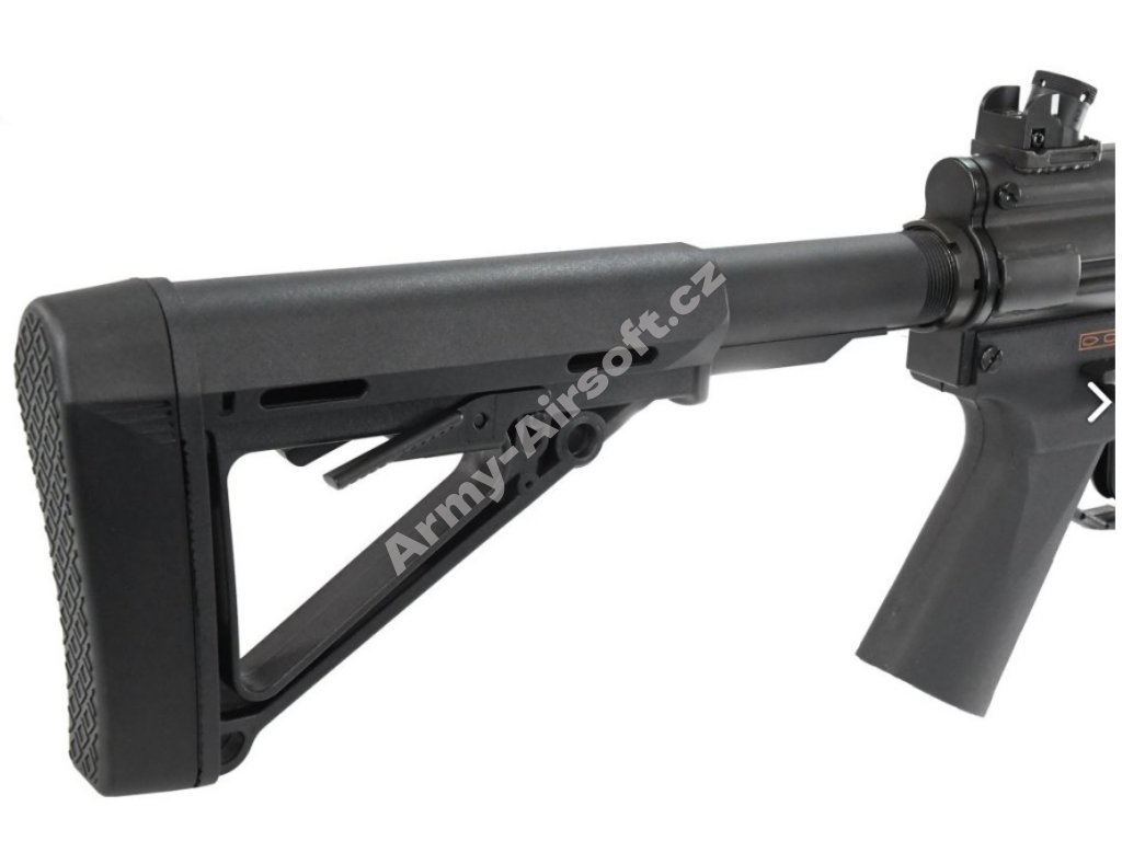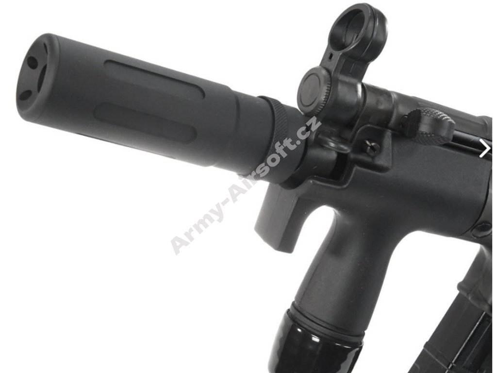 Jak je to možné? Efektu zpětného rázu u zbraní řady MP5 je dosaženo závažím, které je umístěno nad mechaboxem. Tento jednoduchý princip využívá pohybu pístu, který ale není se závažím pevně propojen. Patentované řešení nijak nezvyšuje zátěž samotného mechaboxu.