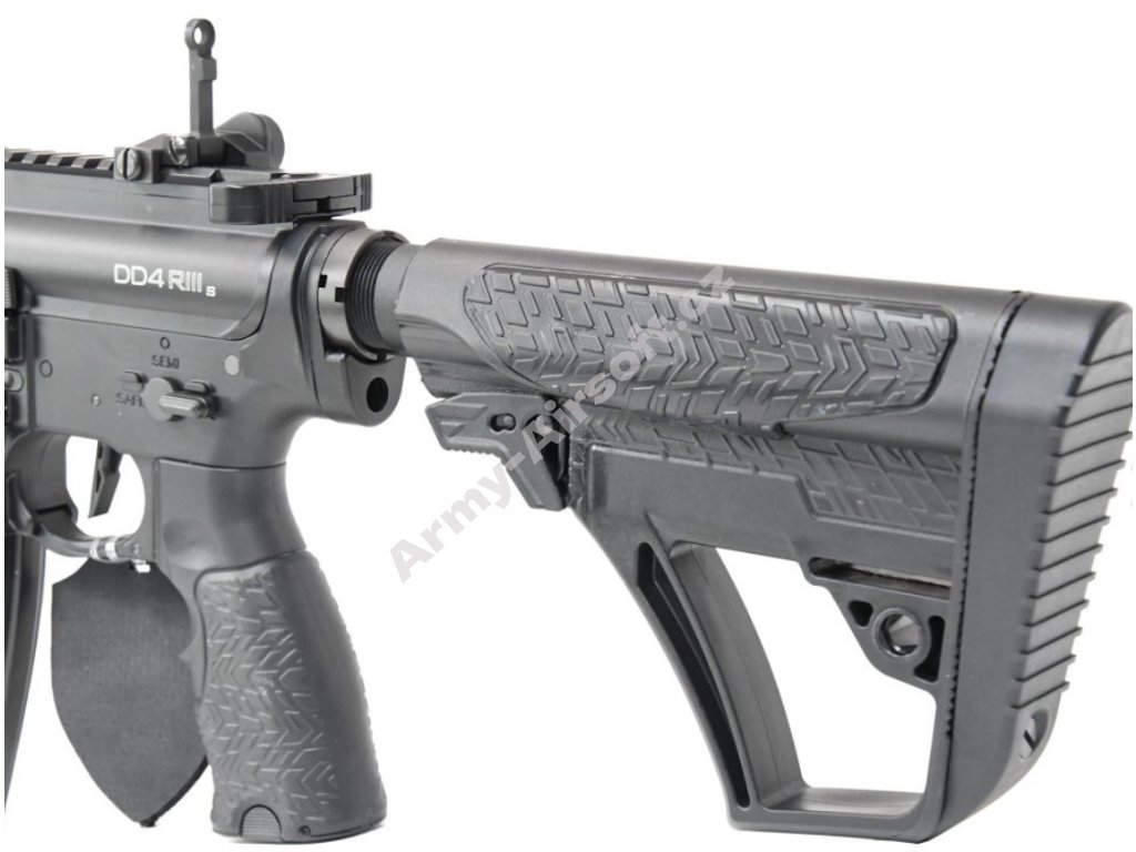 Jak je to možné? Efektu zpětného rázu u zbraní řady M4 je dosaženo závažím umístěným v tubusu. Tento jednoduchý princip využívá pohybu pístu, který ale není se závažím pevně propojen. Patentované řešení nijak nezvyšuje zátěž samotného mechaboxu.