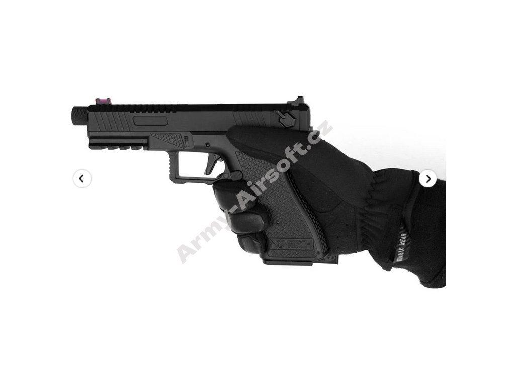 Zdrsněný grip, prodloužený rám a kompatibilita s Glock pouzdry z ní dělají ideální sekundární zbraň pro CQB i venkovní hry.