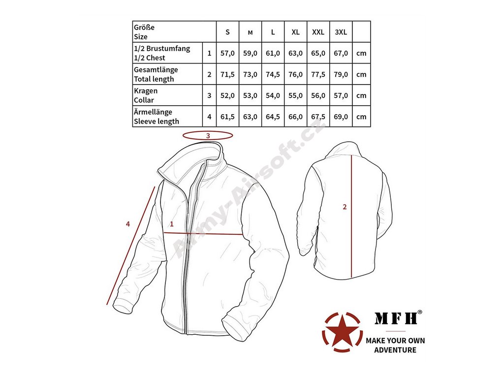 Nejnovější fleecová mikina od značky MFH disponuje zvýšeným krkem a kapucí, předním zipem a dvěma bočními kapsami rovněž na zip.Uživateli přijdou vhod rovněž ramenní kapsy na sluchátka či drobné příslušenství a elektroniku. V neposledí řadě má mikina ramenní panely se suchým zipem na připnutí nášivek.