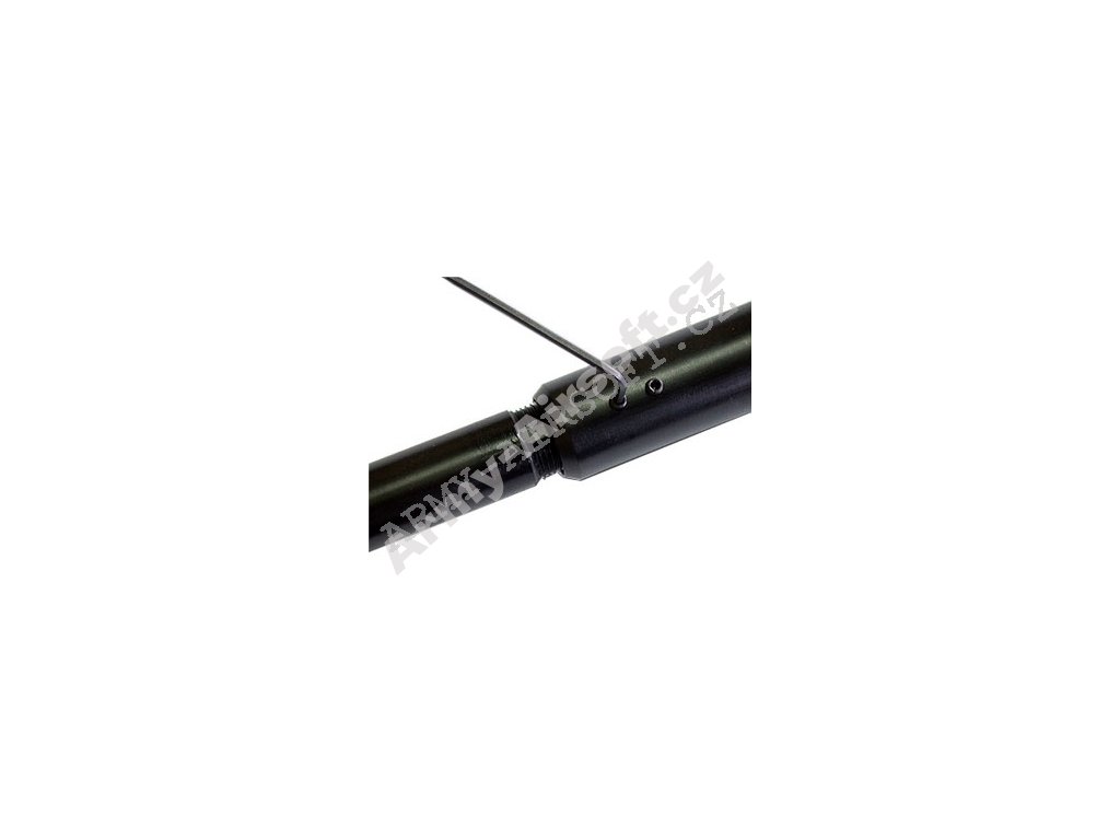 Kovová vnější hlaveň pro M4 (zesílené uložení, zabraňuje kývání, délkově stavitelná pro optimální pozici hop-up setu, lze použít do zbraní M4 většiny výrobců).