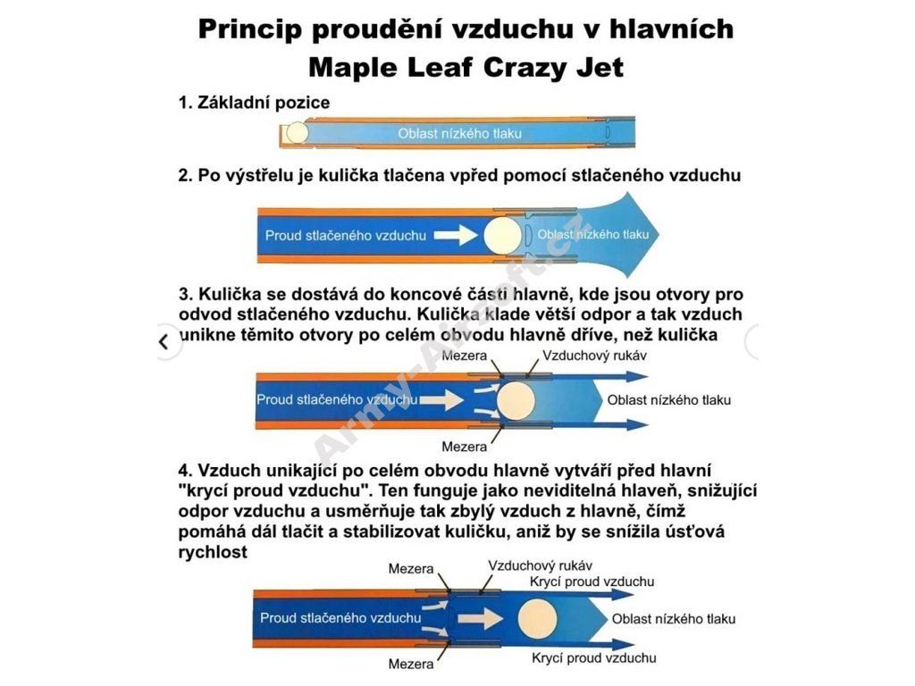 - stabilizuje ji hned po opuštění hlavně