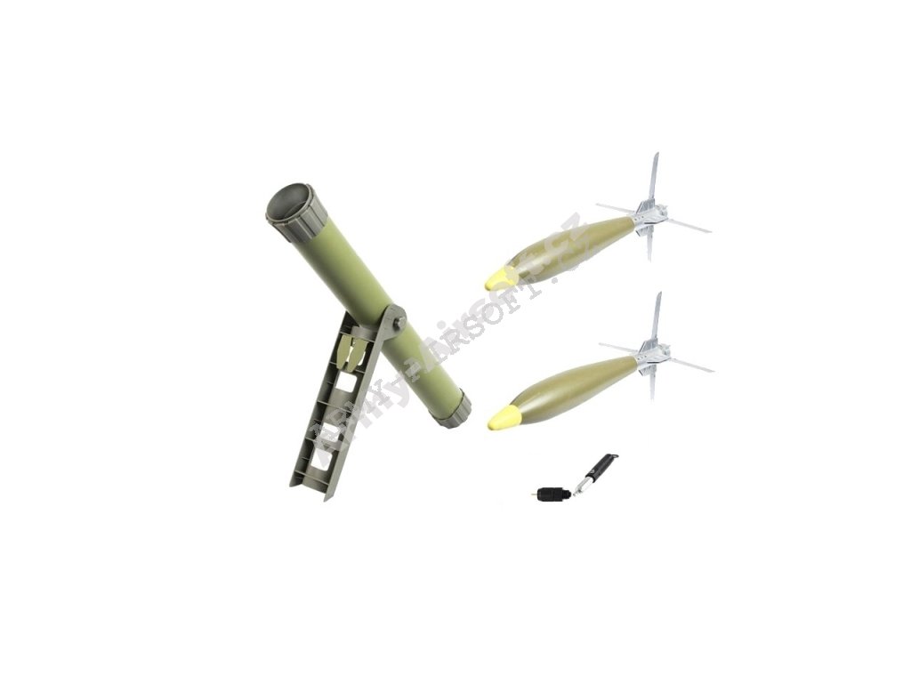 Minomet je dlouhý 72 cm a váhu 1,3 kg, samotný prázdný projektil má délku 58 cm a váhu 260 g. Plnička CO2 má rozměry 14 cm a váhu 150 g, je vyrobena z kovu.