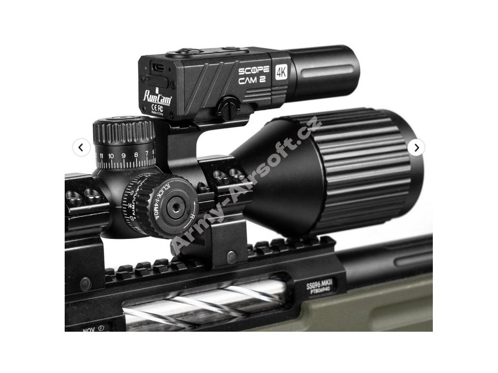 Runcam Scopecam 2 4K je kompaktní akční kamera, která vám umožní zaznamenat každý výstřel ve 4K kvalitě. Kamera se upevňuje na standardní RIS lištu (22 mm), kterou najdete na většině airsoftových zbraní.