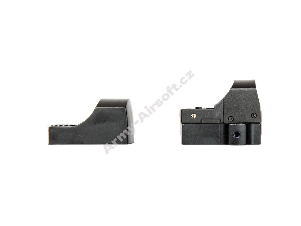 Lehký a kompaktní červený zaměřovač od JJ Airsoft s kovovým pouzdrem, kompatibilní s mnoha typy airsoftových karabin a pušek. Zaměřovač je vybaven integrovaným držákem pro standardní 22 mm RIS lištu a polymerovým krytem.