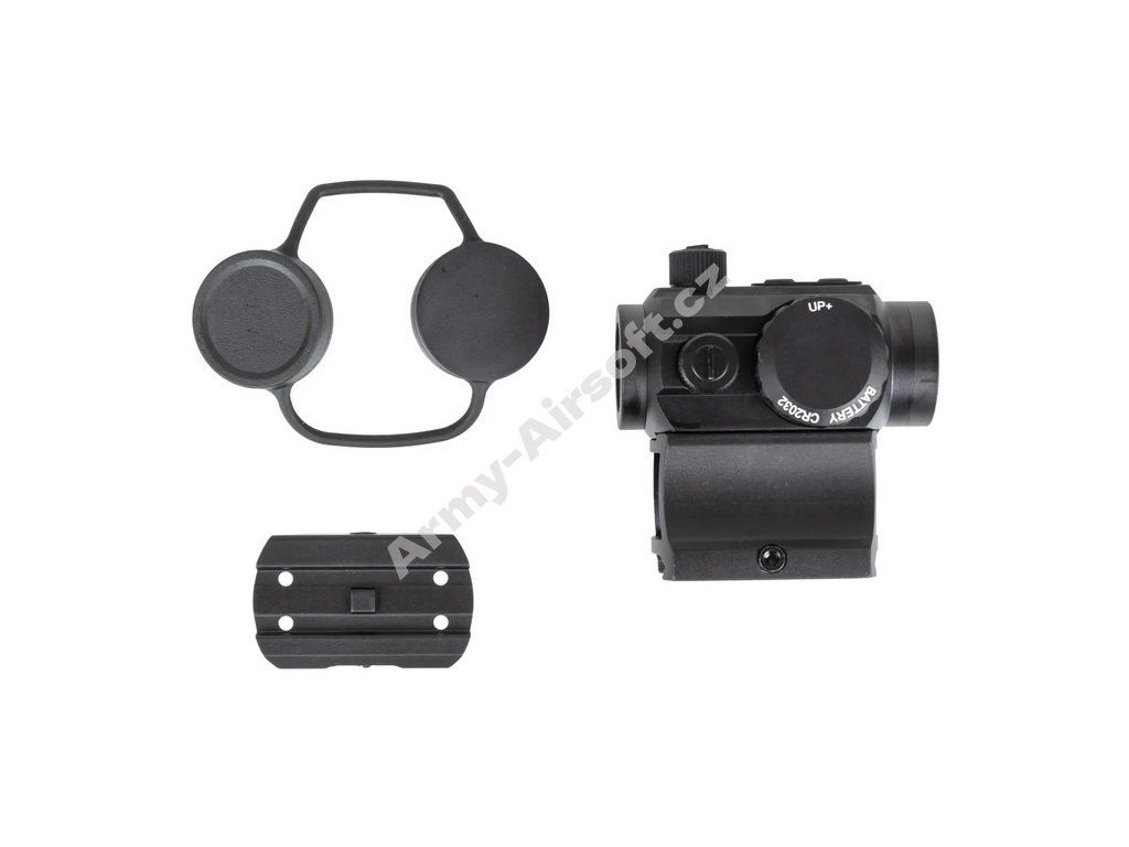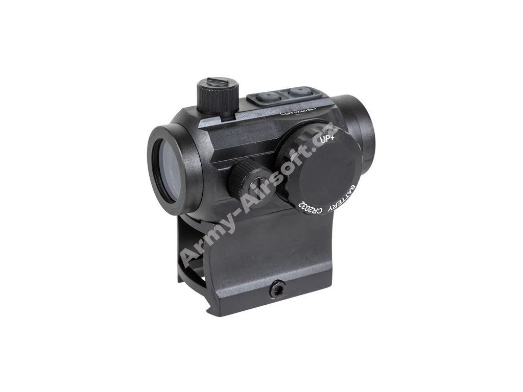 Model nabízí zobrazení zaměřovacího bodu v červené i zelené barvě, přičemž každá má 7 úrovní jasu. Napájen je baterií CR2032 a konstrukce umožňuje jednoduché, ale účinné nastavení ve vertikálním i horizontálním směru (ovládací prvky mají speciální krytky pro snadné nastavení).
