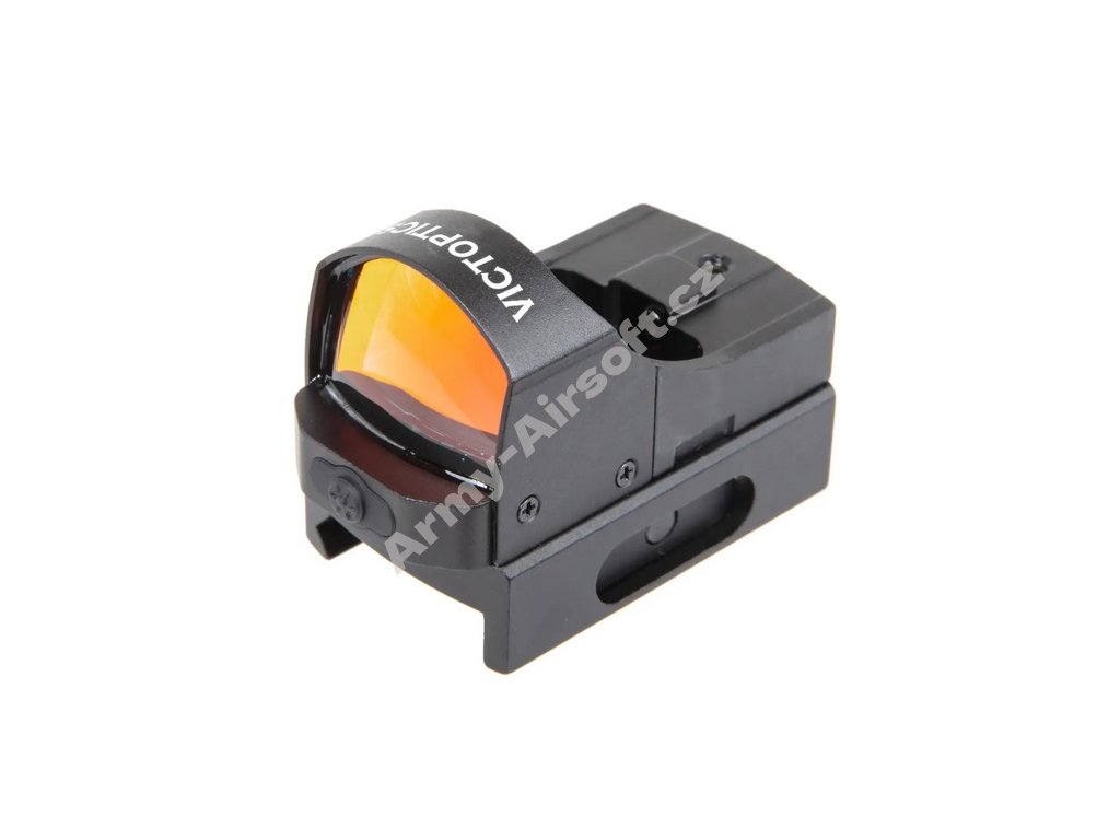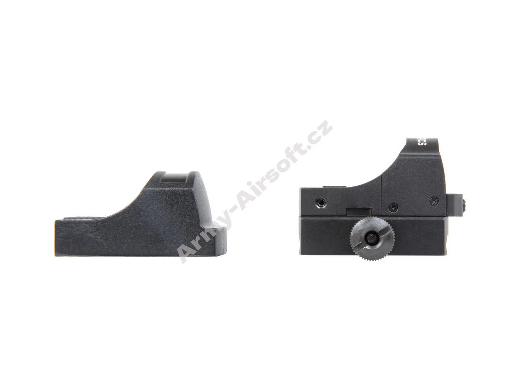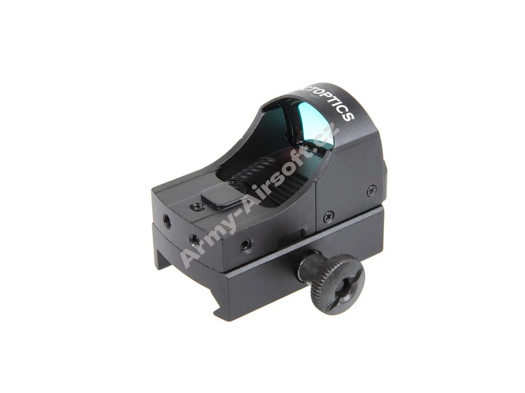 Lehký a kompaktní červený zaměřovač od JJ Airsoft s kovovým pouzdrem, kompatibilní s mnoha typy airsoftových karabin a pušek. Zaměřovač je vybaven integrovaným držákem pro standardní 22 mm RIS lištu a polymerovým krytem.