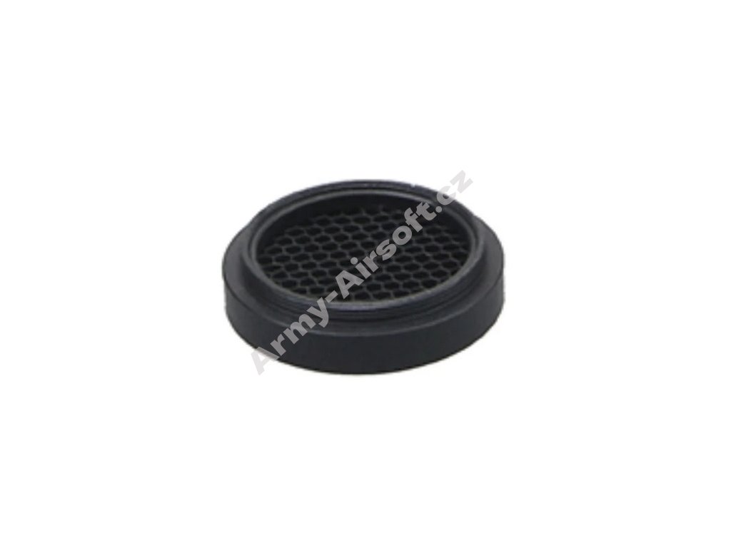 Chrání čočku kolimátoru před poškozením, např. prostřelením kuličkou při airsoftu.