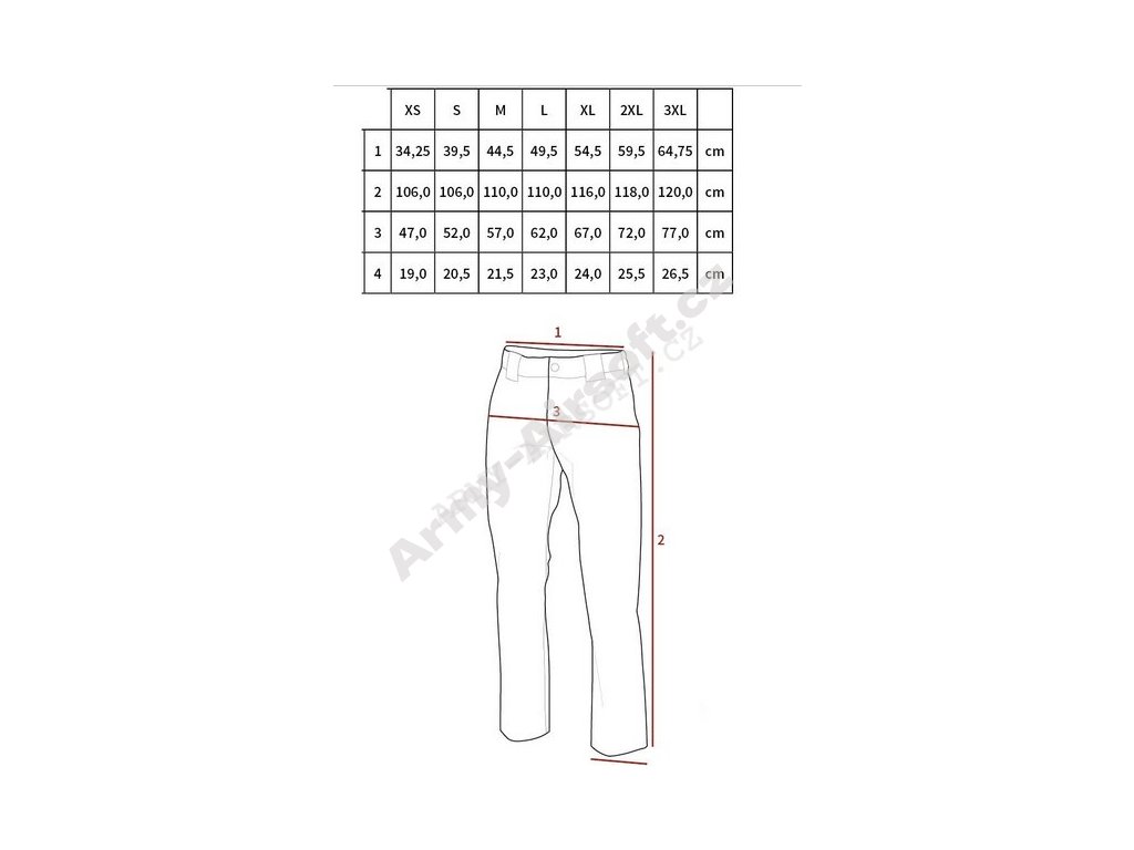 Kalhoty v klasickém střihu BDU, užívaných US Army.