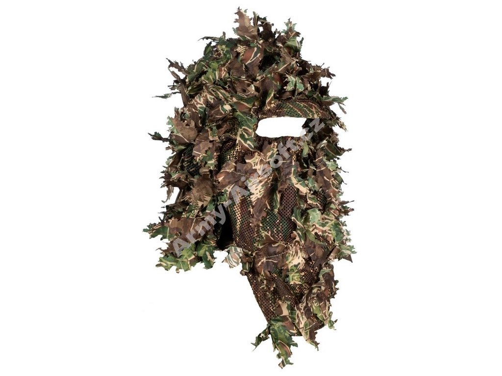 Po celém povrchu jsou rozmístěny 3D maskovací listy a poutka pro živou vegetaci, díky nimž kapuce dokonale splyne s okolím. Pomocí druků ji lze přímo připnout k Modular Ghillie blůze, čímž vznikne plynulý přechod bez viditelného spoje.