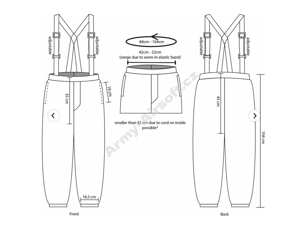Stažení pomocí šňůrky, vhodné pro obvod pasu až 104 cm.
