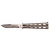 Lovecké nože: Pevné čepele s ergonomickými rukojeťmi, často zdobené rytinami nebo dřevěnými prvky.