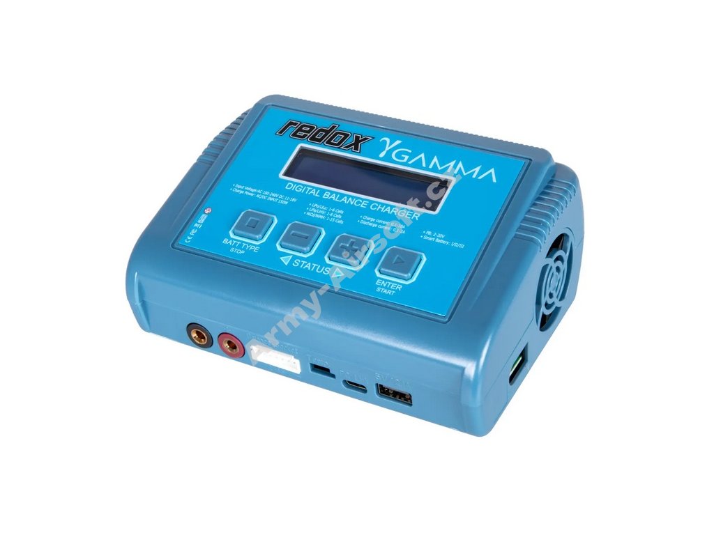 Pokročilá nabíječka Redox GAMMA s vestavěným napájecím zdrojem a balancérem. Umožňuje nabíjení i vybíjení baterií typu LiIon, LiPo, LiFe, Ni-Cd, Ni-MH a Pb.