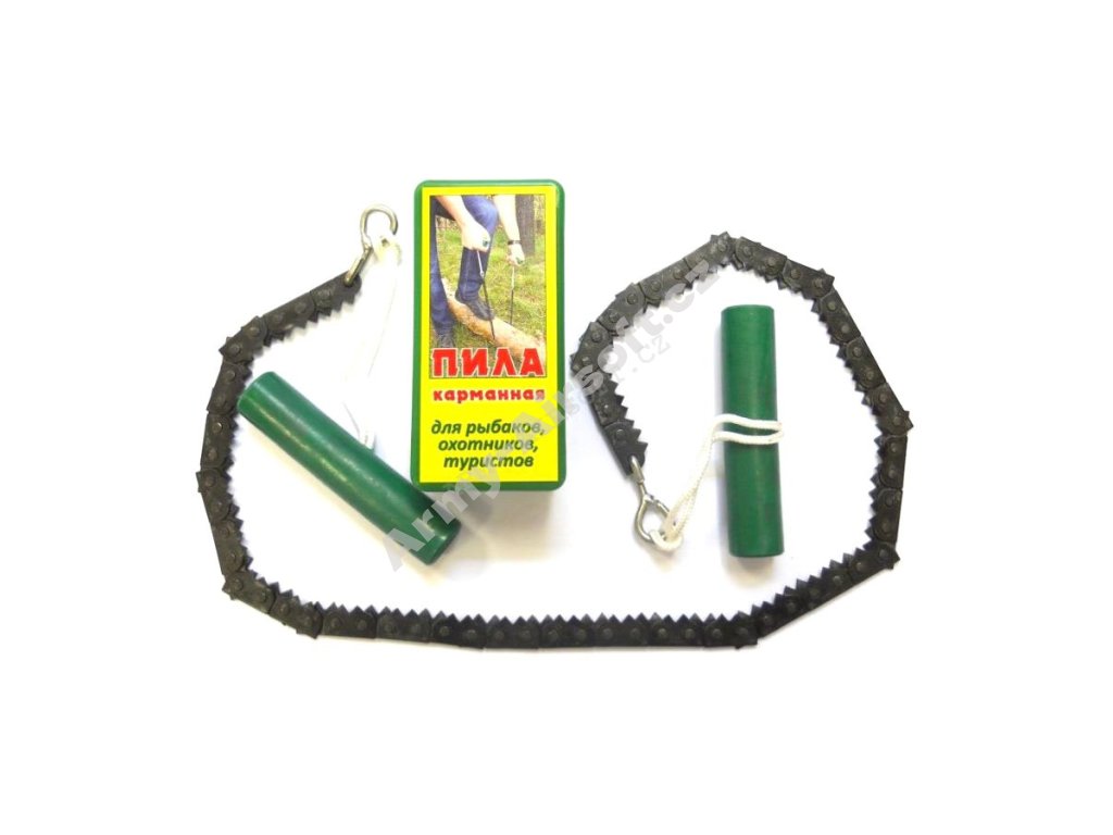 Pila je vyrobená z vysoce pevné oceli HRC 40-45 s antikorozní ůpravou. Zuby tvoří řez široký 3,5 mm. Délka pily je 100 cm, řezací délka je 71 cm.