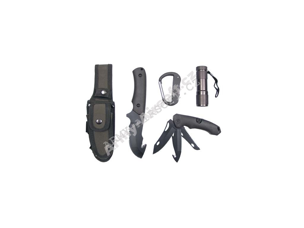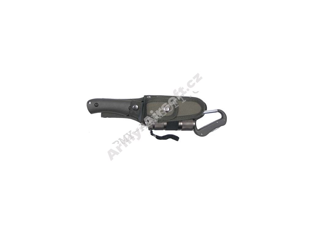 Nůž s pevnou čepelí + zavírací nůž + svítilna + karabina - ZELENÝ Army shop
