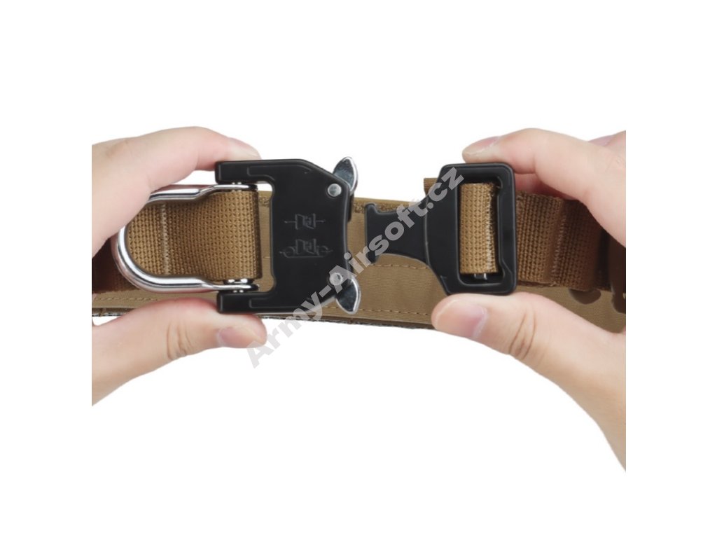Vnější opasek šířky 50 mm, vyztužený termopolymerovou vložkou. Obsahuje tři řady slotů v systému molle vyřezávaném laserem