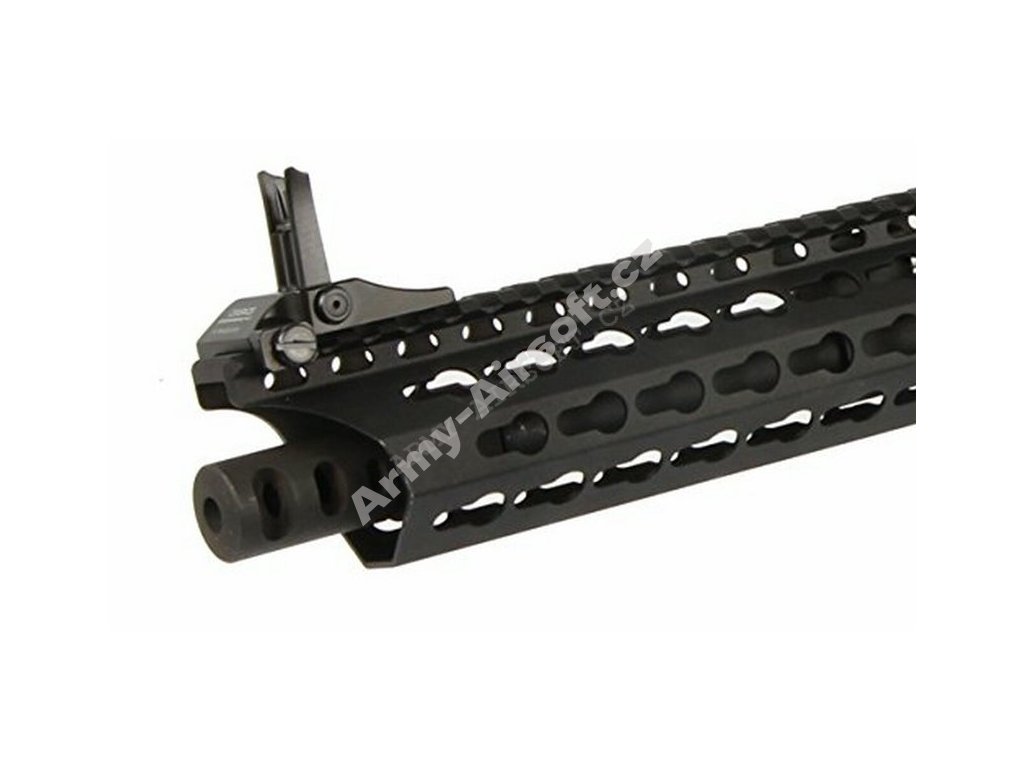 Airsoftová zbraň s celokovovým tělem a předpažbím. Předpažbí umožňuje instalaci Keymod R.I.S. lišt pro další příslušenství. Výsuvná pažba obsahuje úložný prostor pro baterii do příslušenství. Mířidla jsou sklopná a lze je demontovat.