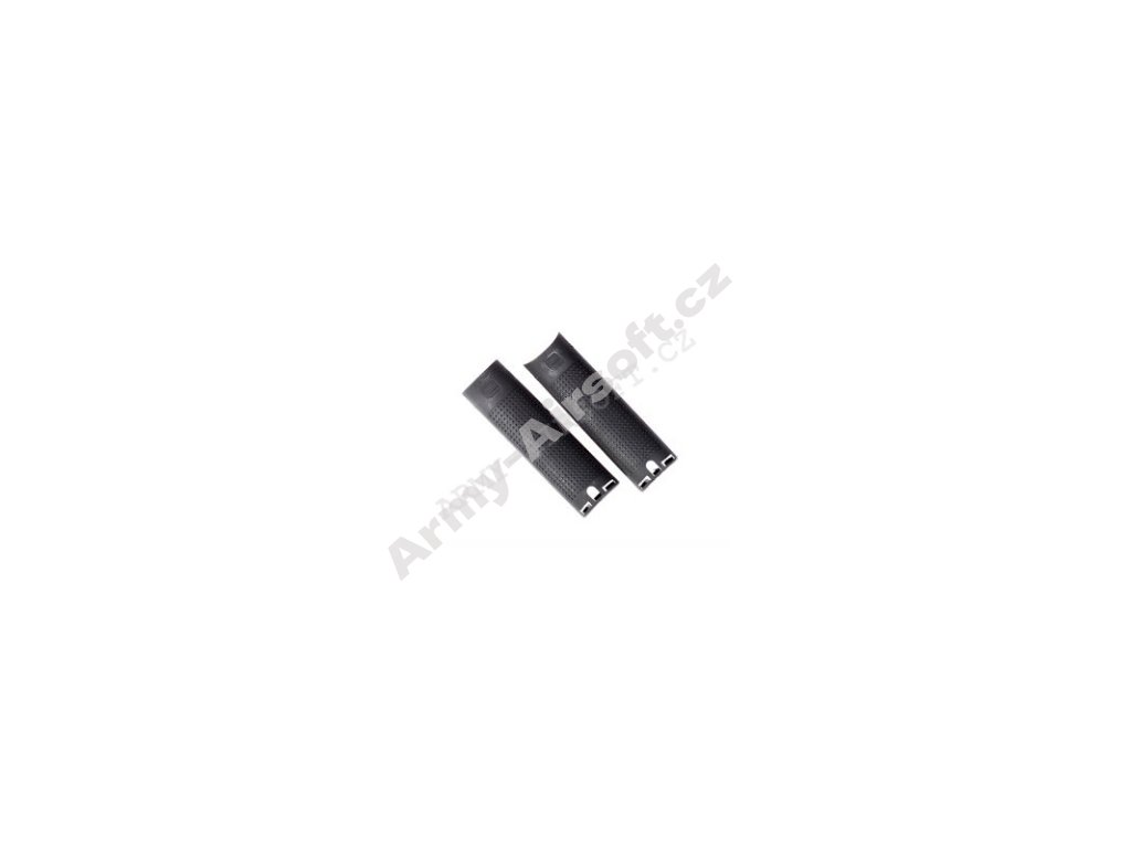 Obsahem balení jsou i dvě plastové střenky o různé velikosti. Ty se mohou nasadit na zadní stranu pažbičky a zvětšit tak její objem. Vše dle velikosti ruky a potřeb střelce.
