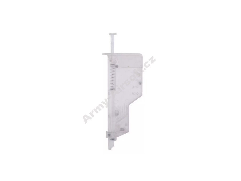 Plastový, kompaktní rychlonabíječ s kapacitou 155 BB, který umožňuje efektivně nabít jakýkoliv typ zásobníku (real / low-cap / mid-cap). Snadno se vejde do kapsy nebo do pouzdra na zásobník STANAG.
