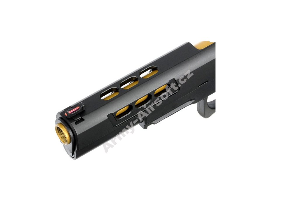 Airsoftová plynová pistole GBB, úsťová rychlost až 340 FPS, váha 1,20 Kg, délka 23 cm, zásobník na 28 BB