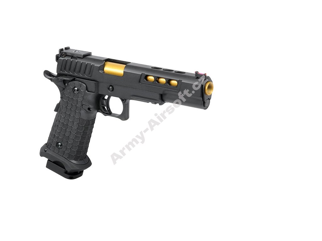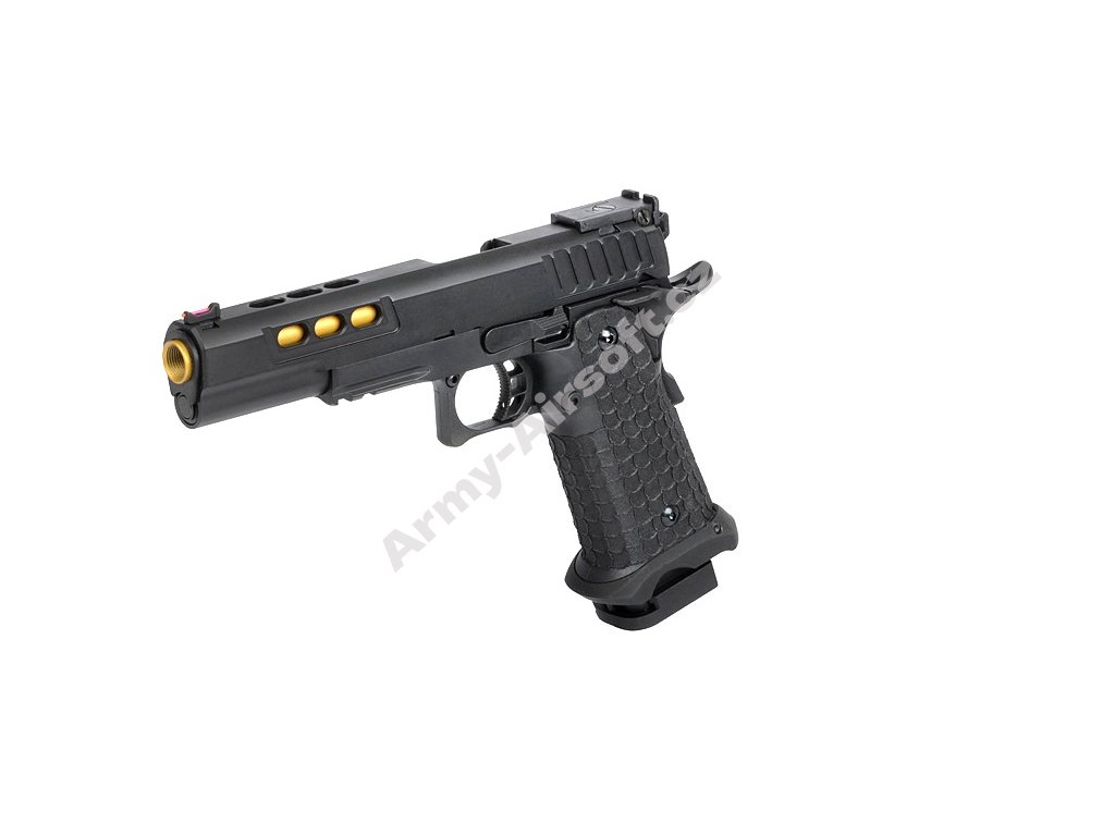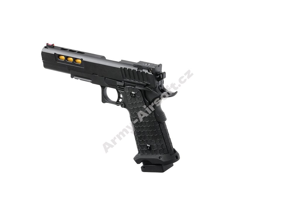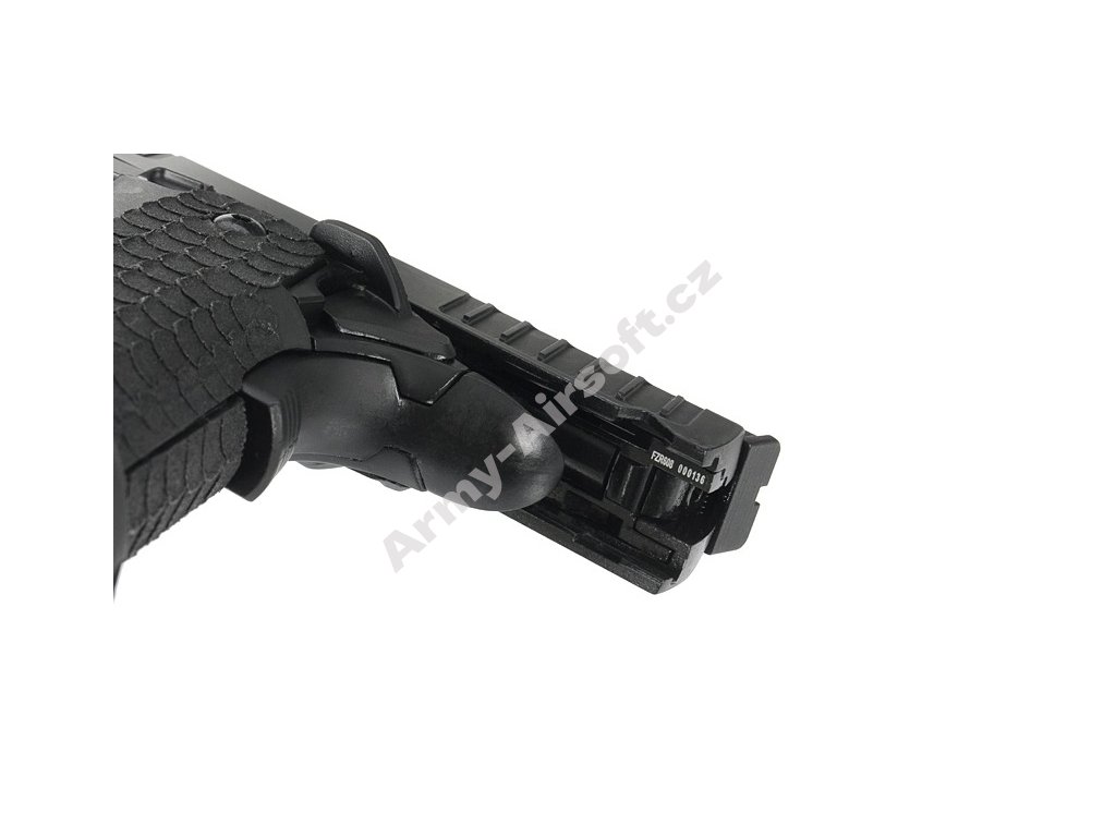 Novinka v podobě XL verze airsoftové repliky postavené na osvědčené platformě 1911 Hi-Capa, vyvinuté předním výrobcem ARMY ARMAMENT, přináší do světa airsoftu nový rozměr. Tato airsoftová zbraň není jen věrnou napodobeninou ostré zbraně, ale spoléhá také na spojení spolehlivosti, přesnosti, vynikajícího dostřelu, to vše zabaleno do esteticky působivého designu a odolné konstrukce.