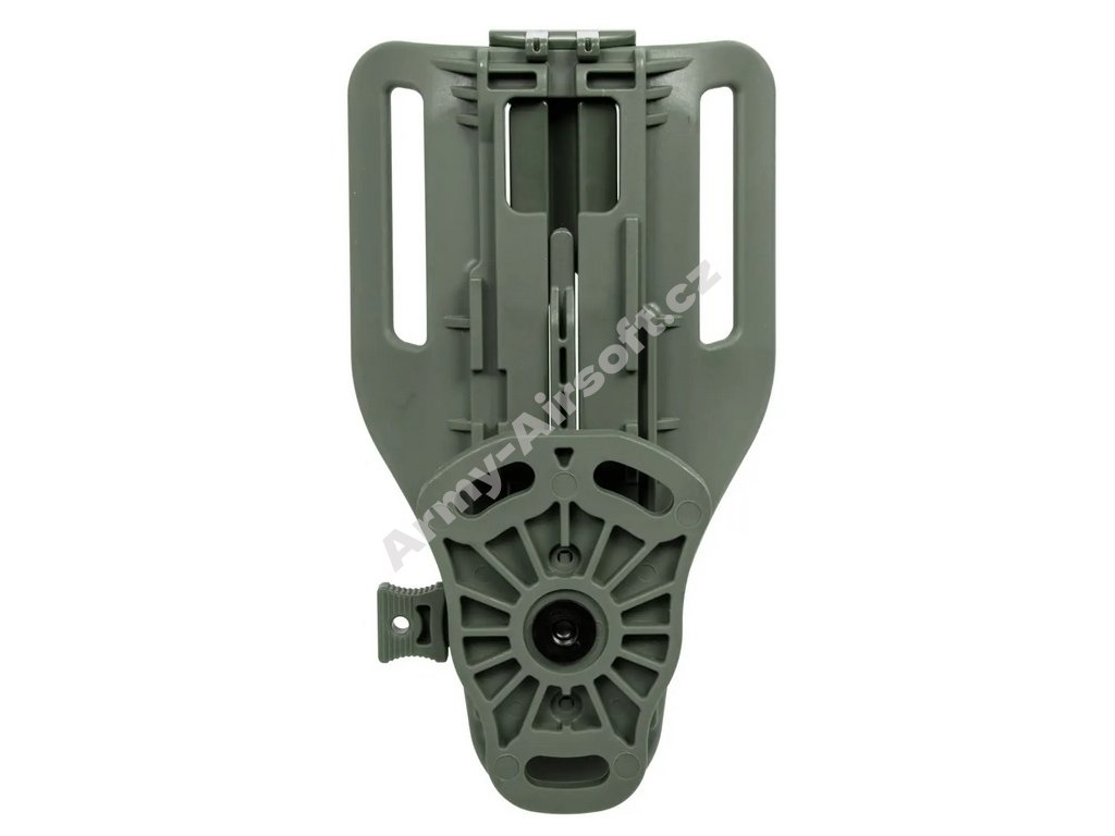 Robustní základna adaptéru pouzdra, kompatibilní s většinou Quick Release pouzder. Adaptér je lehce ovladatelný a nastavitelný ve 3 úrovních, aby vyhovoval potřebám uživatele. Lze jej upevnit na opasek o šířce max. 55 mm.