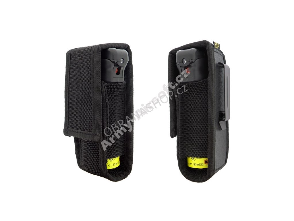 Pouzdro je vybaveno uzávěrem se suchým zipem, který zajišťuje rychlý přístup ke spreji a zároveň bezpečné uchycení během pohybu.