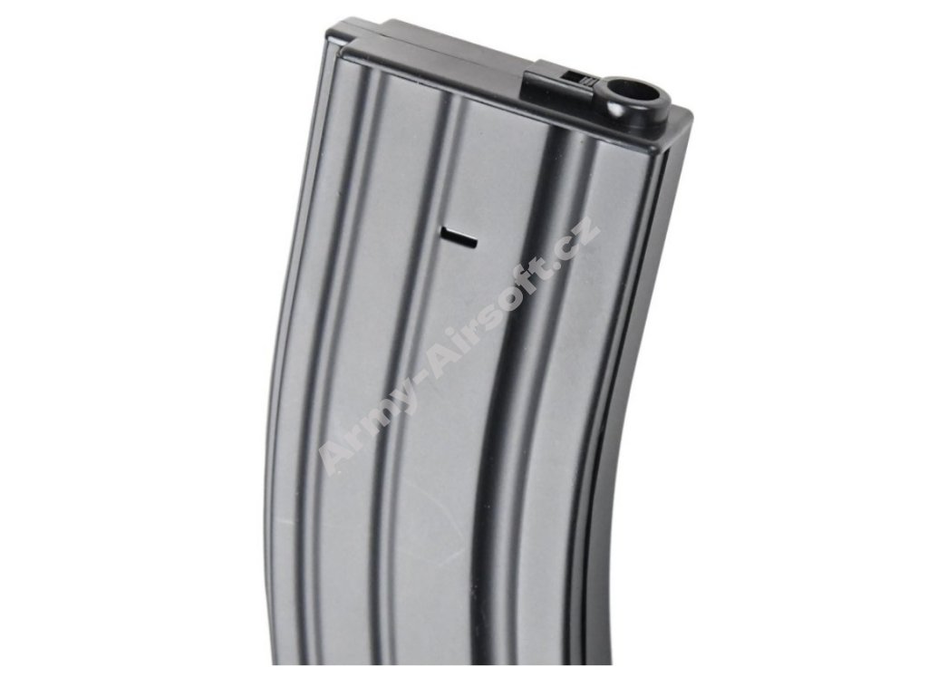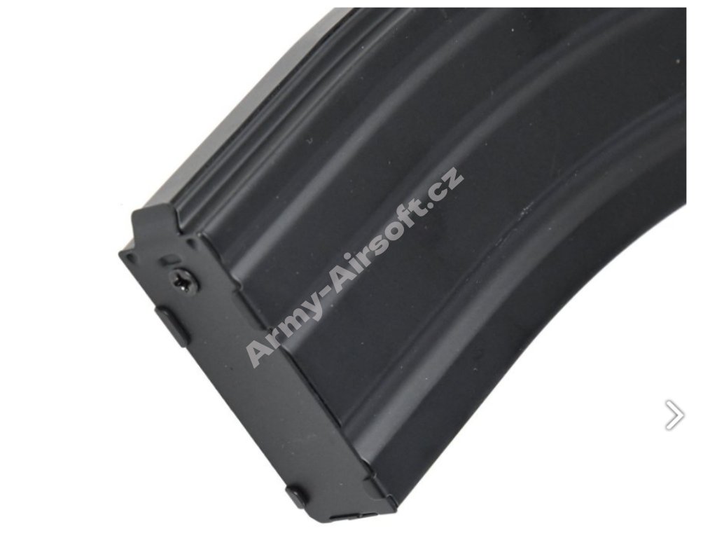 Odolný kovový Mid-Cap zásobník s kapacitou 150 BB pro AEG M4/M16. Tlačný mechanismus, realistický design, váha 207 g.
