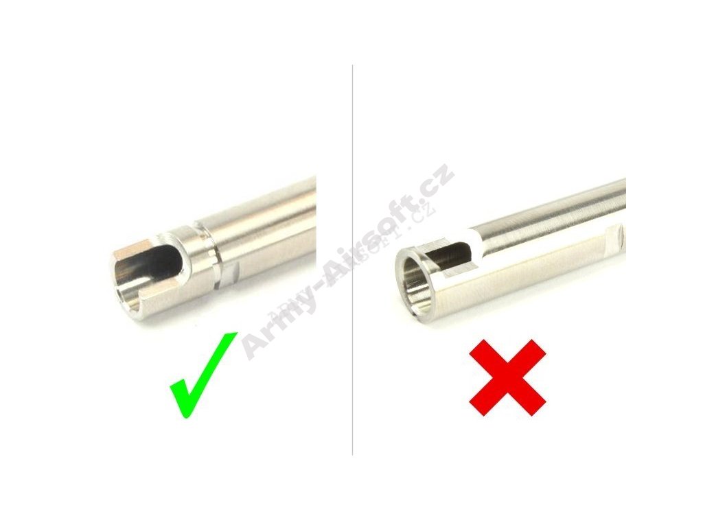 - Vzhledem k délce tvarovaného výstupku je nutné použít hlaveň s otevřeným koncem (viz. obrázek). Pokud takovou hlaveň nemáte, je možné přepážku u vaší hlavně odštípnout a začistit.