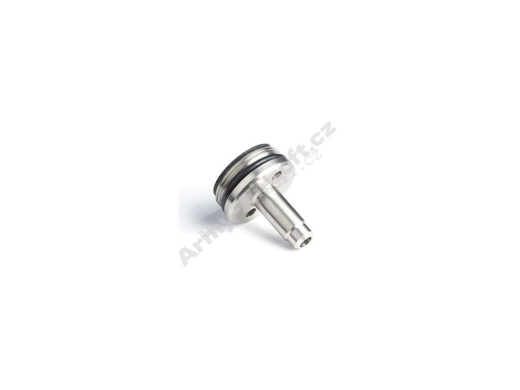 Nerezová upgrade hlava válce pro airsoftové odstřelovací zbraně. Dopad pístu je opatřen gumovým dorazem.