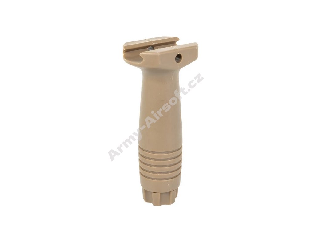 Svislá rukojeť je vyrobena z odolného polymeru. Montuje se na RIS lištu a padne na většinu replik. Díky jejímu použití může uživatel manévrovat s replikou ještě efektivněji.