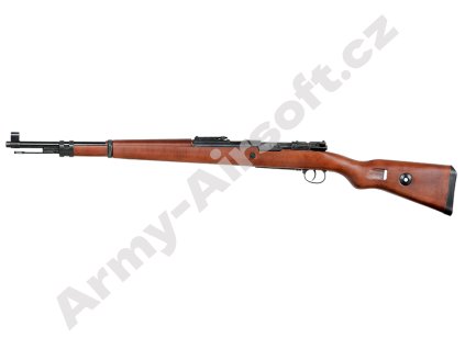 Airsoftová manuální puška, replika KAR98K, úsťová rychlost až 390 FPS, váha 2610 g, délka 110 cm, zásobník na 25 BB.