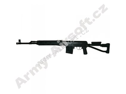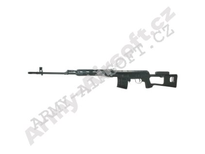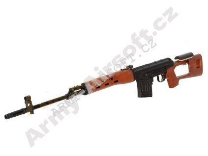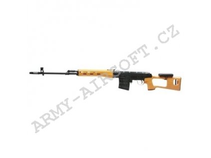 Airsoftová manuální odstřelovací puška, replika SVD Dragunov, úsťová rychlost až 410 FPS, váha 3120 g, délka 121 cm, zásobník na 80 BB