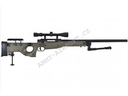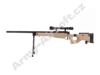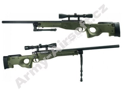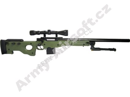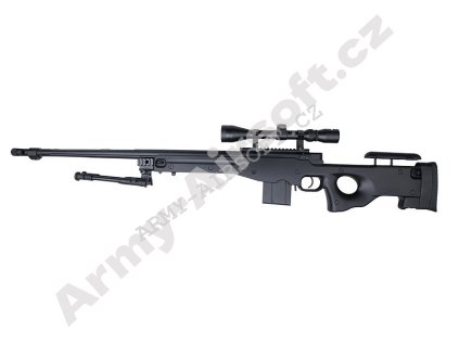 Airsoftová manuální odstřelovací puška, replika L96A1/AWM, úsťová rychlost až 680 FPS, váha 3480 g, délka 114 cm, 1x zásobník na 24 BB