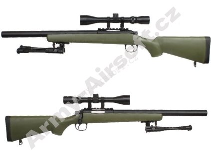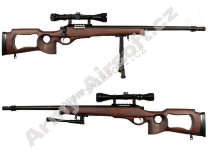 Airsoftová manuální odstřelovací puška, replika VSR10, úsťová rychlost až 560 FPS, váha 2660 g, délka 109 cm, 1x zásobník na 30 BB