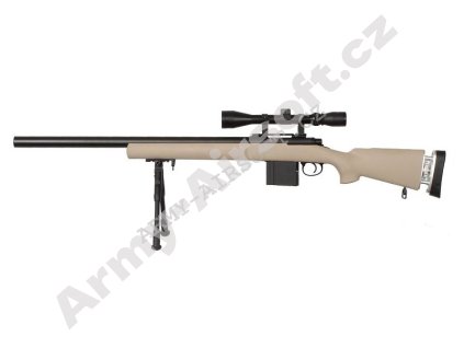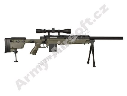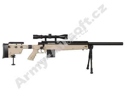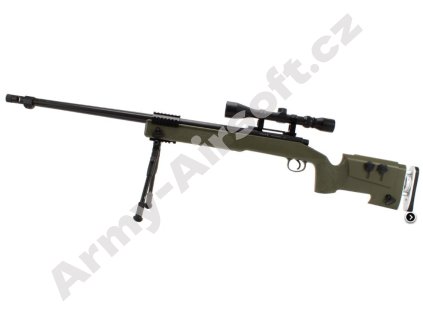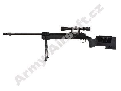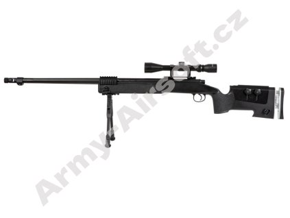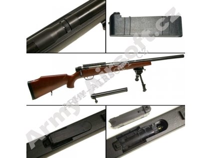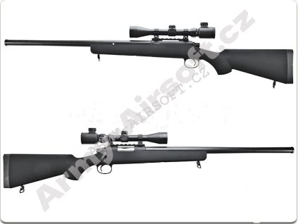 Airsoftová manuální odstřelovací puška, replika M700, úsťová rychlost až 650 FPS, váha 2490 g, délka 115 cm, 1x zásobník na 30 BB
