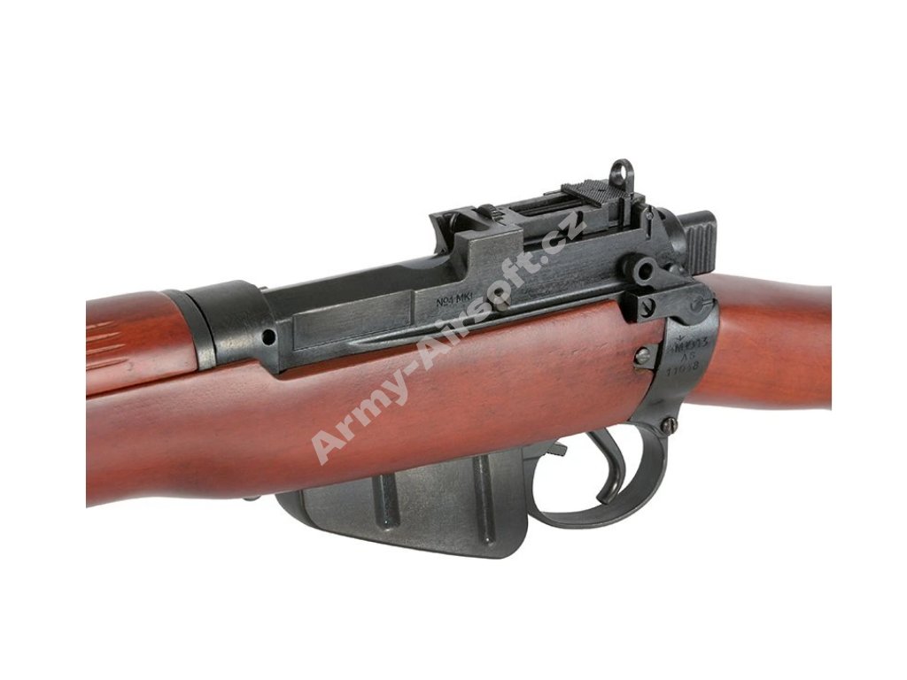 Lee-Enfield No.4 MK1 byla standardní opakovací puška britských a Commonwealth jednotek během 2. světové války. Model má charakteristické zadní hledí s posuvným otvorem a mušku na hlavni; originální konstrukce zahrnuje i bajonetový zámek pro boj zblízka.
